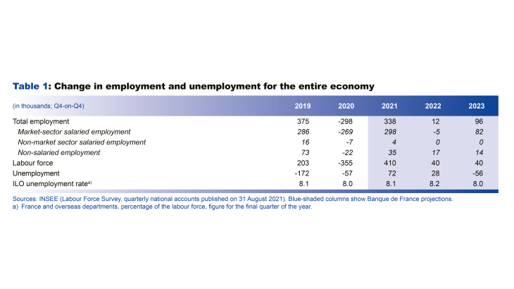 • The strength of the recovery in economic activity in France is bearing out in 2021, after the historic fall in 2020. With the rapid expansion of the vaccination campaign, GDP and employment rebounded significantly in the second quarter. This momentum should continue in the third quarter according to our business surveys, and thereafter activity should remain buoyant in the fourth quarter, despite the new variants of the Covid-19 and certain sectoral supply or recruitment difficulties.
