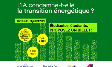 Pour la huitième édition de son Concours Bloc-notes Éco, la Banque de France propose aux étudiants en France d’écrire un billet sur le thème « L’IA condamne-t-elle la transition énergétique ? ».