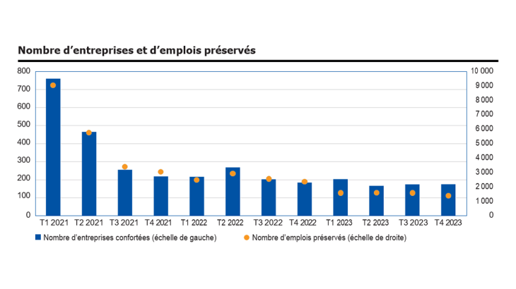 Elles ont abouti favorablement dans plus de la moitié des cas ce qui a permis aux 594 entreprises concernées confrontées à des difficultés avérées de bénéficier d’un rééchelonnement des échéances de leurs PGE (sur une durée maximale de 4 ans), d’un réaménagement équilibré de leurs autres crédits bancaires à moyen terme et de visibilité sur leurs lignes de court terme.